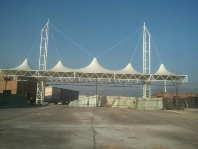 張拉膜門頭景觀的輕質性,因為使用特殊的膜布結構,膜布本身自重比較輕盈,比其他傳統建筑結構的重量要小很多,設計師可以根據輕質性這個優點,設計出大跨度的景觀張拉膜設施。