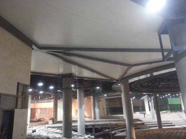 膜結構室內吊棚是一種軟性材料,是根據龍骨的形狀來確定它的形狀。所以造型比較隨意、多樣,讓設計師更具創造性,可直接安裝在墻壁、木方、鋼結構、石膏間墻和木間墻上,適合各種建筑結構。并且膜結構室內吊棚只需用螺絲釘按一定距離均勻固定即可,安裝十分方便。在整個安裝過程中,不會有溶劑揮發、不落塵、不對本空間內的其它擺設產生影響,不影響正常的生產工作生活秩序。